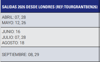 - Tour Panorámico de Londres, Edimburgo, Glasgow, Belfast, Dublín, Cork y Liverpool.