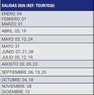 - Excursiones opcionales.